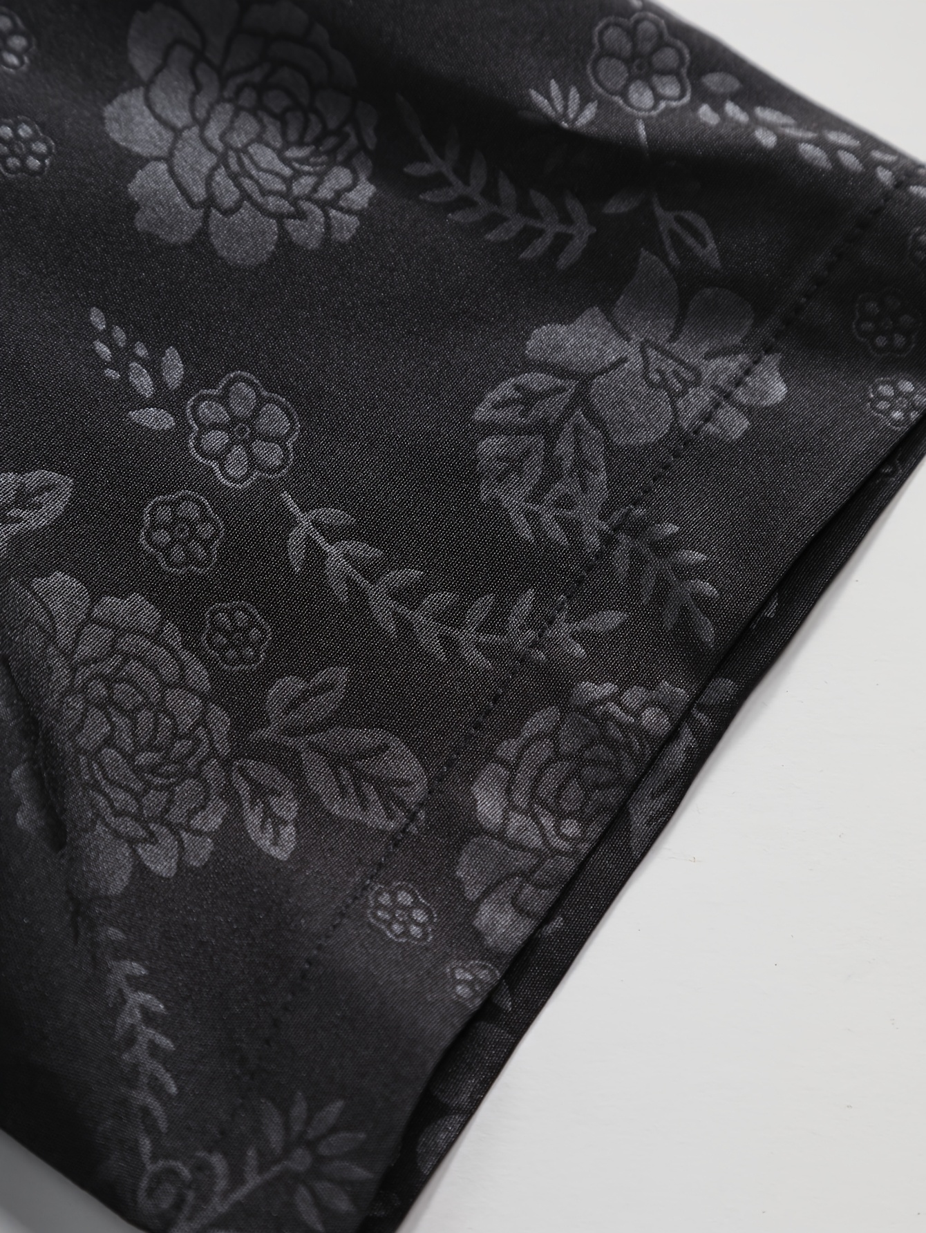 [Floral Shirt] Men's Lightweight Summer Casual Short Sleeve Shirt with Stylish Floral Print, Black & White Design, Polyester Blend, Perfect for Casual Attire, Short Sleeve Tops