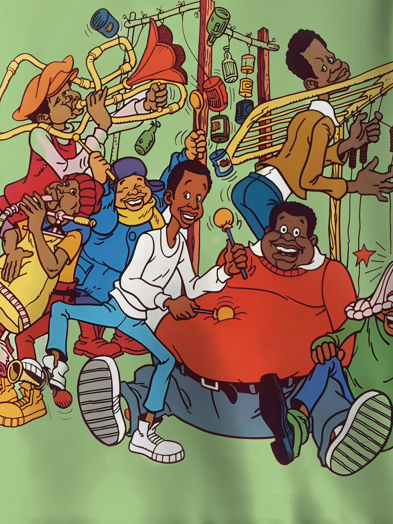 Lime Green Men's 3D Funny Cartoon Graphic Hooded Sweatshirt with Music Band & Retro TV Print, Soft Warm Pullover for Autumn Winter Casual Wear, Machine Washable Digital Hoodie for Themed Parties & Everyday Outfits