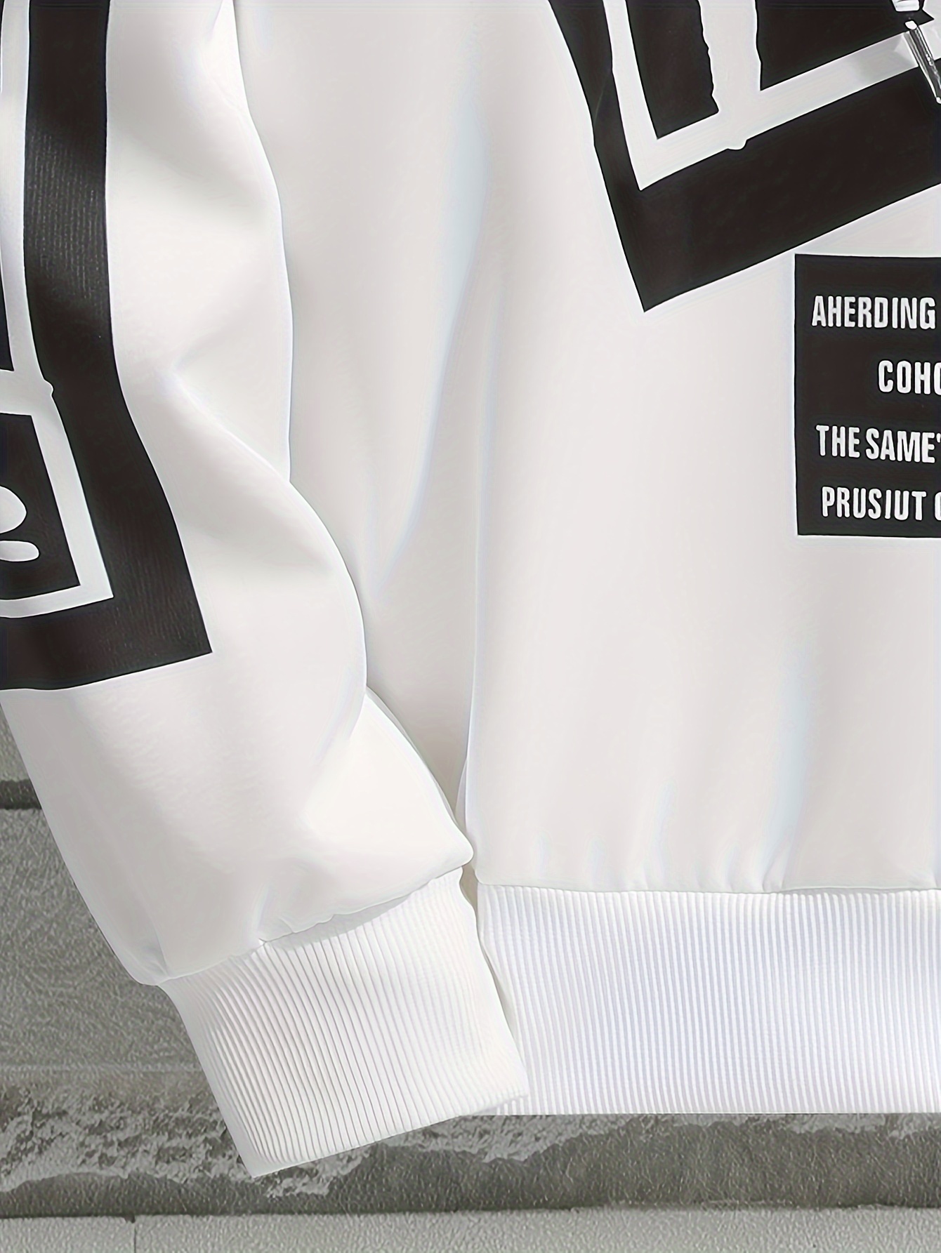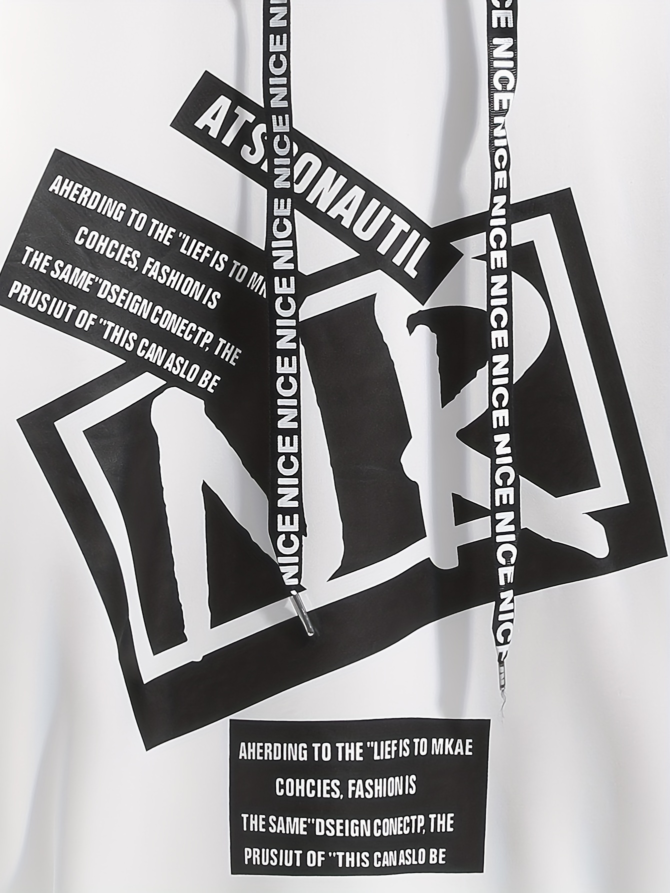 2-Pack Men'S Casual Long Sleeve Hooded Sweatshirts, Polyester Knit Fabric with Slight Stretch, Regular Fit, Alphabet Pattern, Sports Style Hooded Pullover for Outdoor, Leisure & Athletic Wear