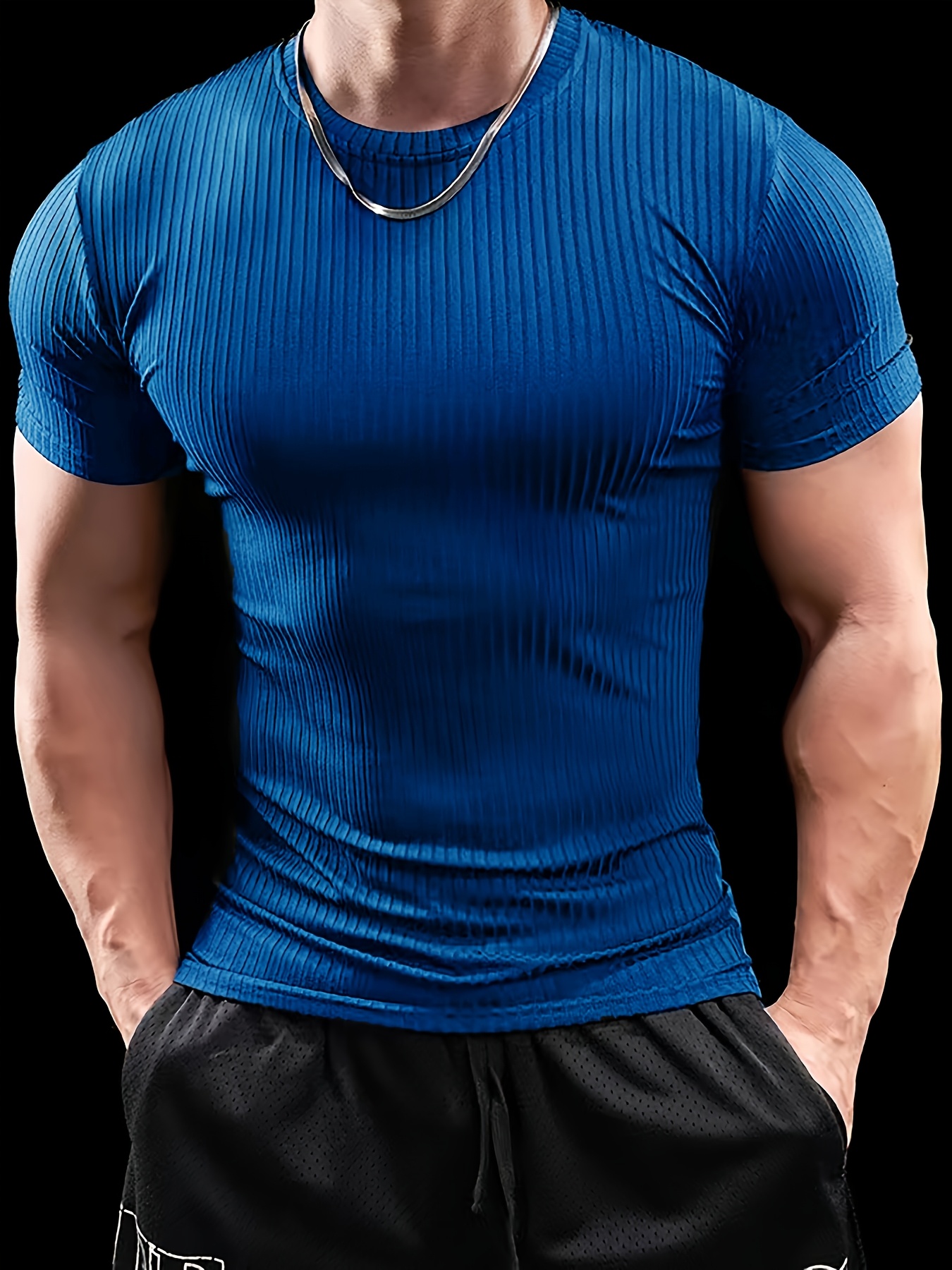 5pcs Men'S Short Sleeve Ribbed Knit T-Shirts - Breathable & Comfortable, Casual Solid Color Crew Neck Tees for Spring/Summer, Lightweight Polyester Blend, Perfect for Casual Attire, Spring Summer Apparel | Casual Style | Comfortable Fit