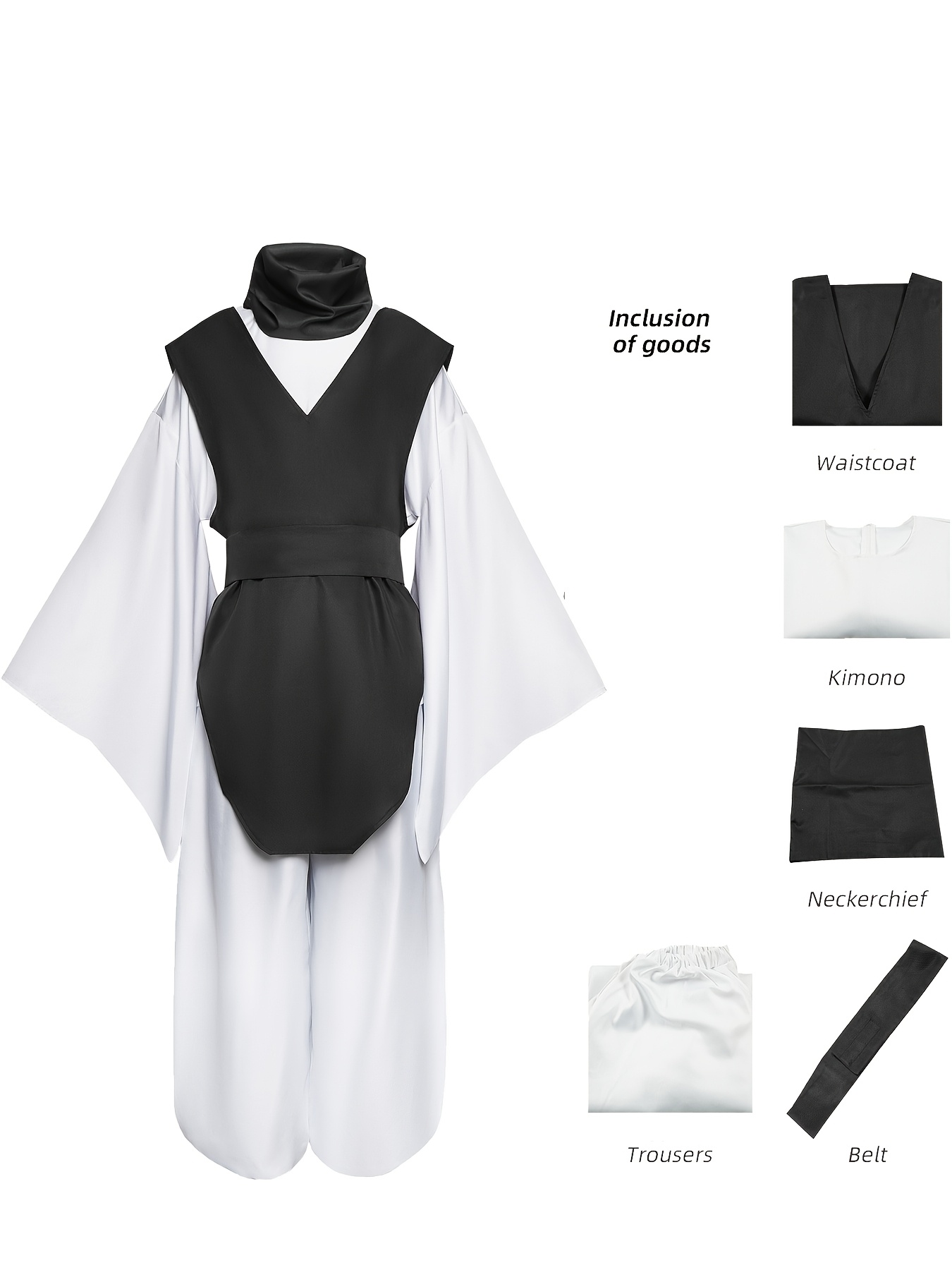 Anime Choso Character Costume Set - Black & White Long Sleeve Top with Belt, Vest, and Pants - Perfect for Parties, Cosplay, and Themed Events, Themed Event Attire|Sleek Formal Attire|Stretchy Fabric