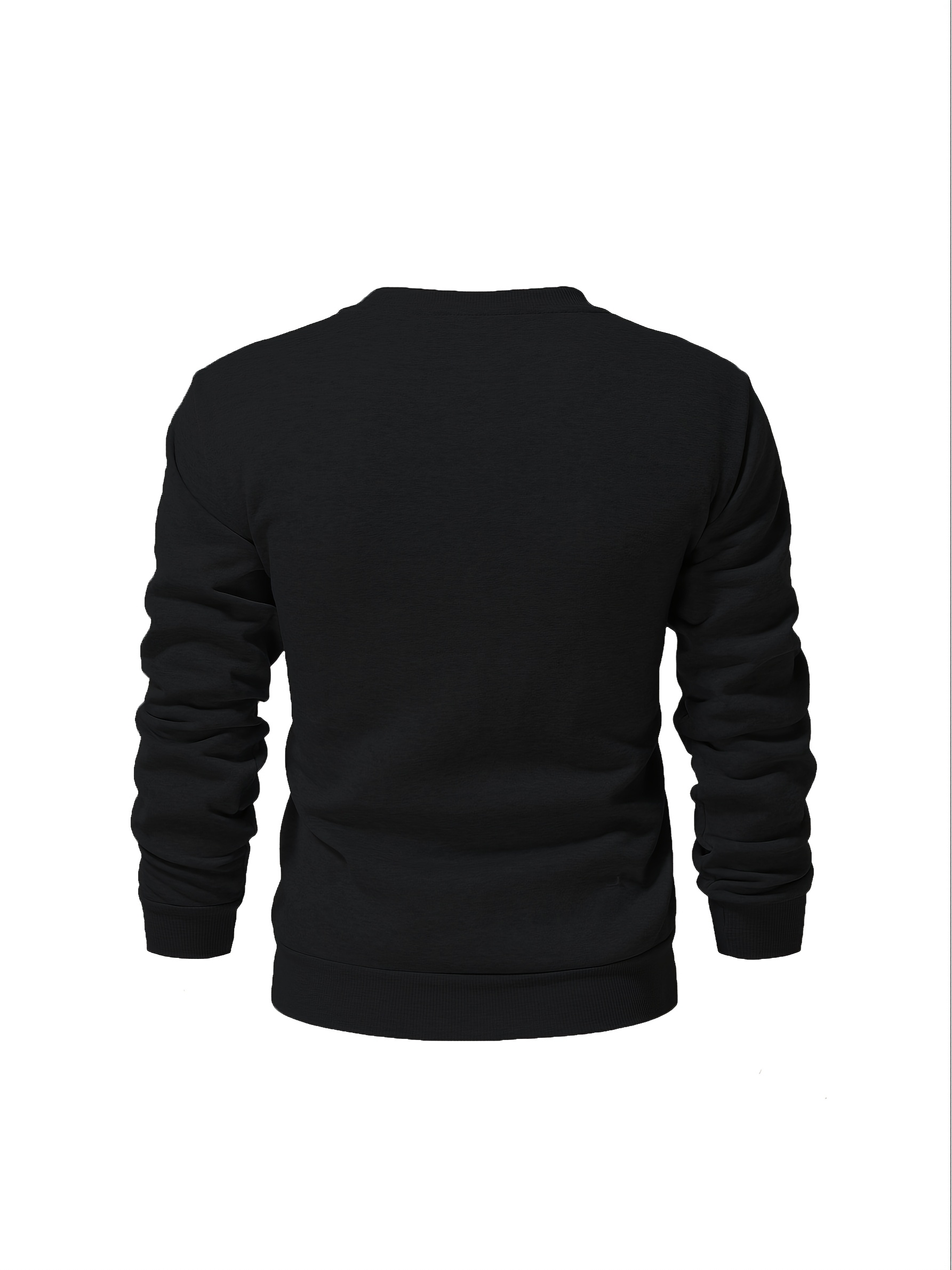[Casual Geometric Stripe] Men's Casual Geometric Stripe Sweatshirt | Black & White Crew Neck Pullover | Comfortable Knit Fabric | Long Sleeve Hoodie