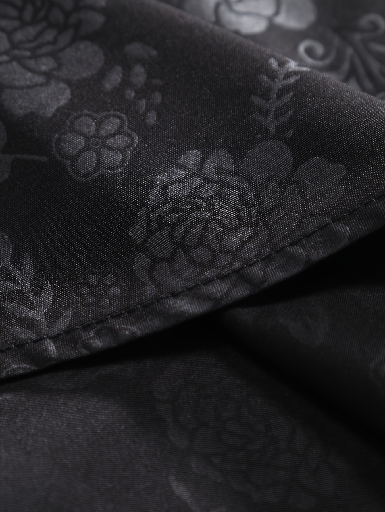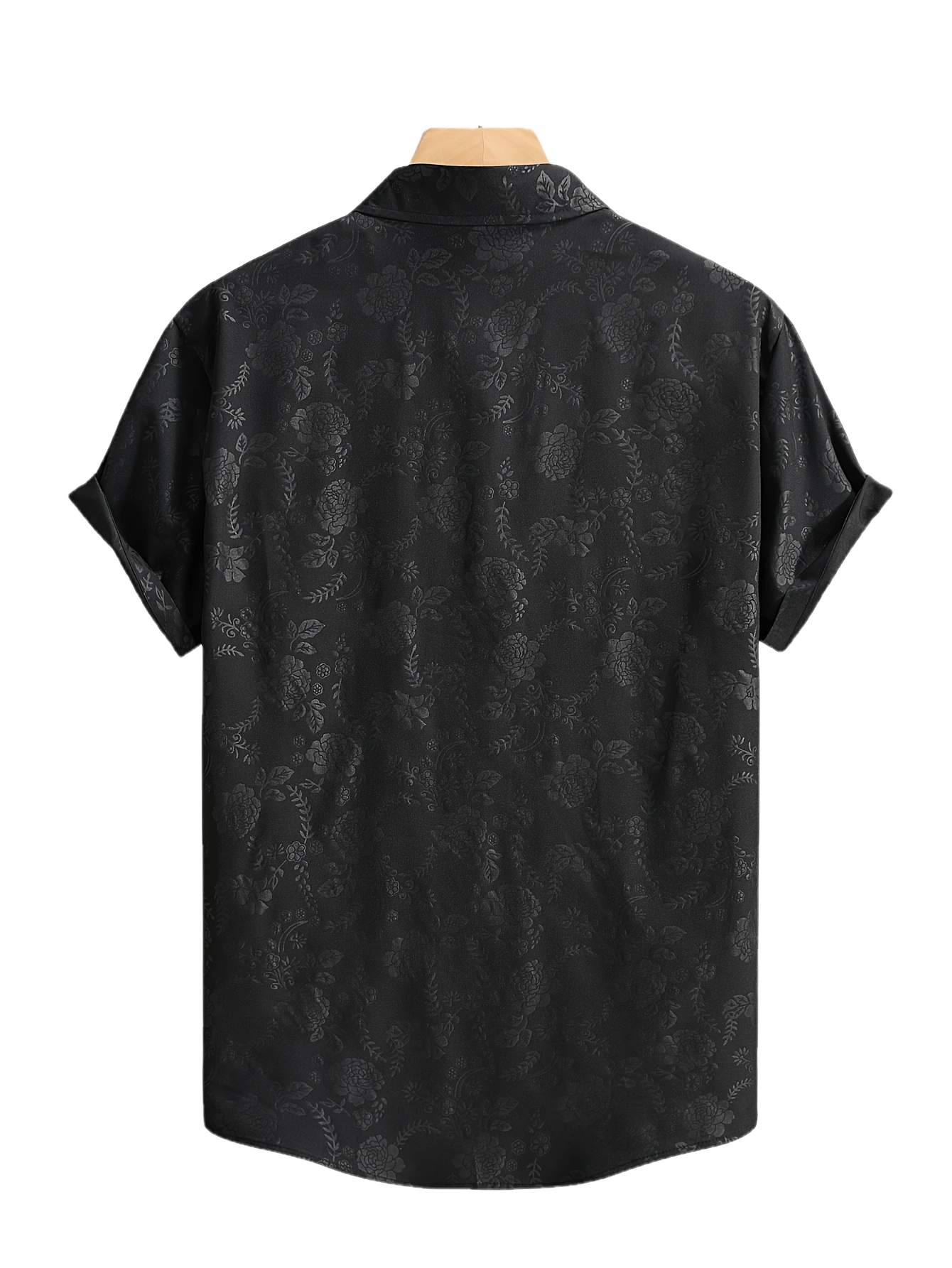 [Floral Shirt] Men's Lightweight Summer Casual Short Sleeve Shirt with Stylish Floral Print, Black & White Design, Polyester Blend, Perfect for Casual Attire, Short Sleeve Tops