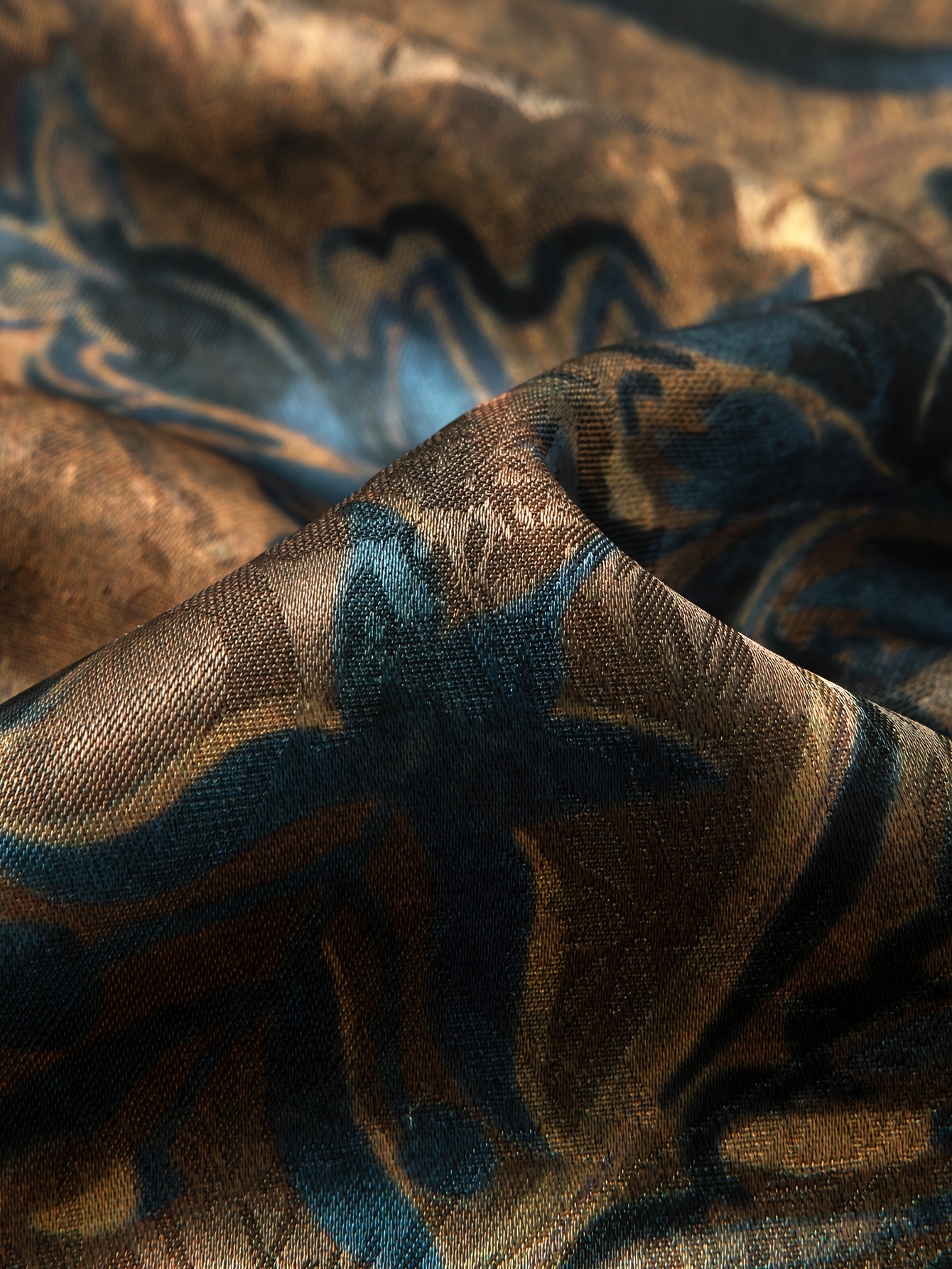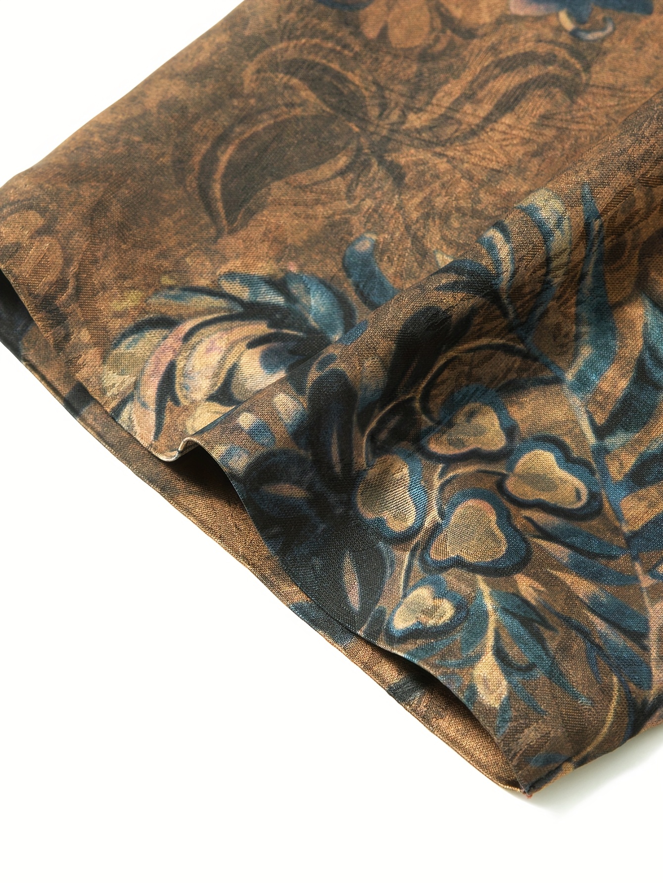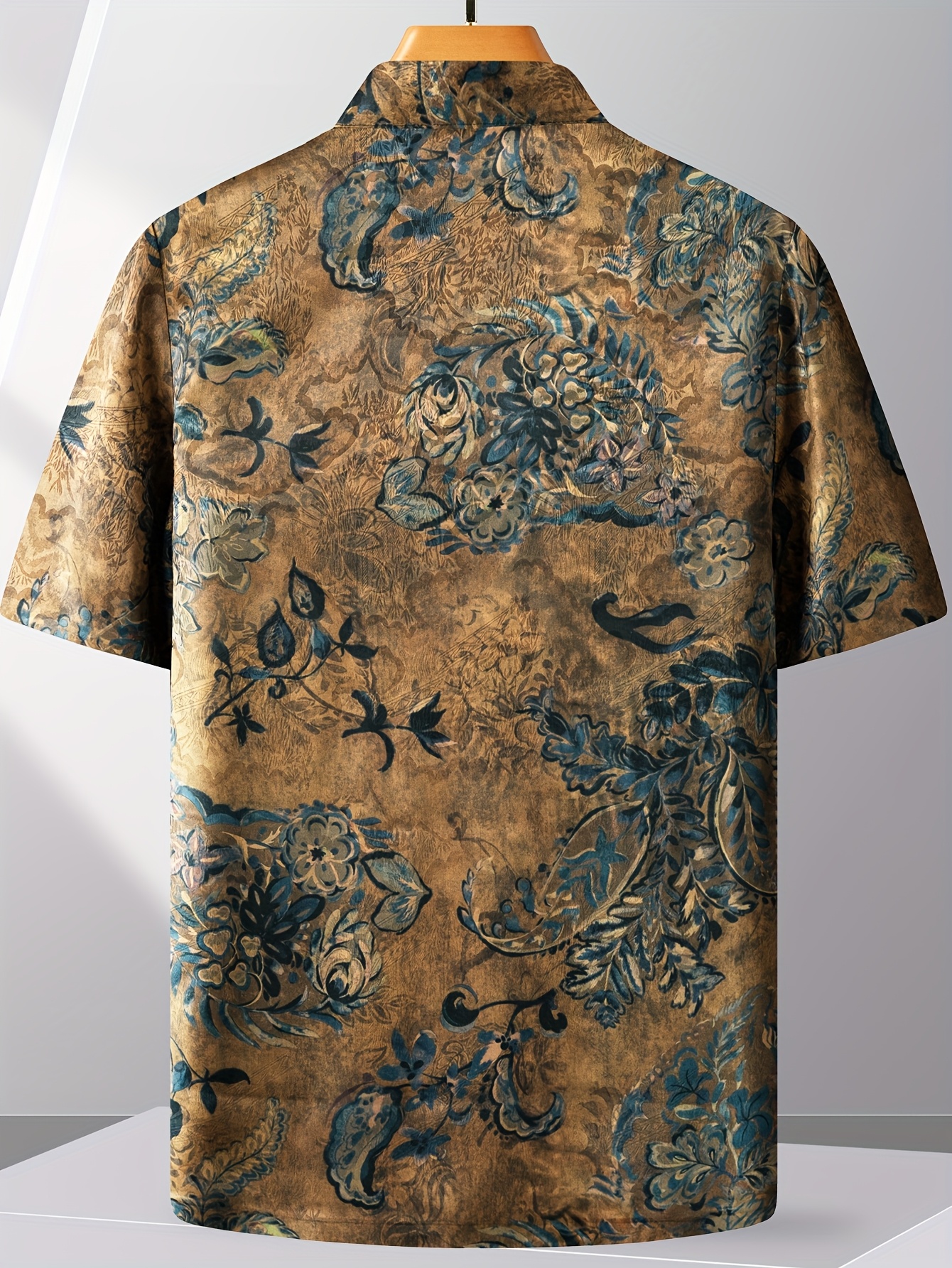 FORTEI Men's Traditional Chinese Tang Suit Short Sleeve Shirt - Lightweight, Light Beige-Friendly Polyester Blend with Intricate Floral Print, Button-Up Collar Design for Casual Summer Wear