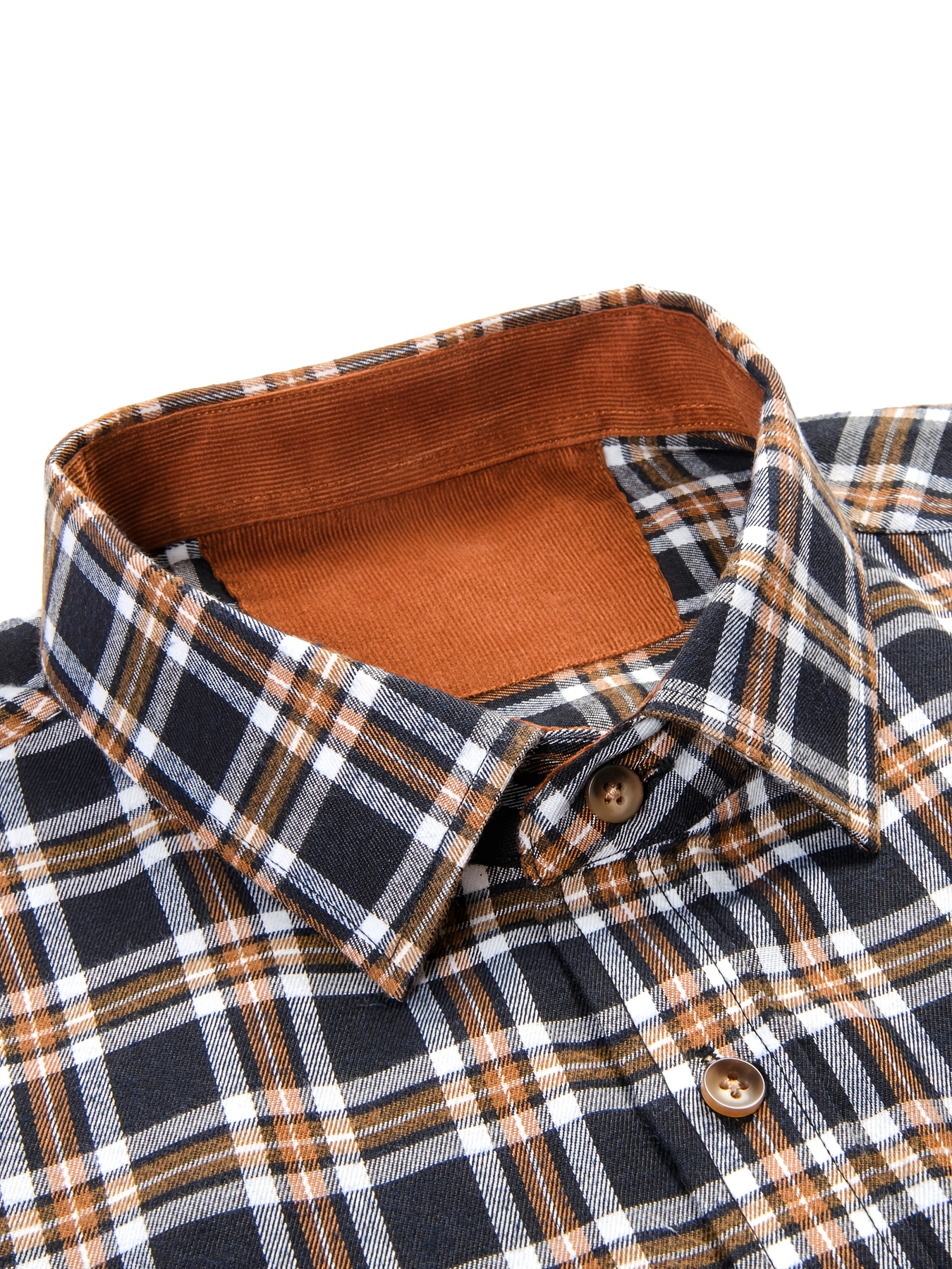 Men's Heavy-Duty Plaid Long Sleeve Dress Shirt - Winter Warmth Collar & Chest Pocket Button, Blue/White/Black/Brown Checkered Pattern, Loose Fit Casual & Formal Button-Up Coat Jacket-like Blazer (Machine Washable)