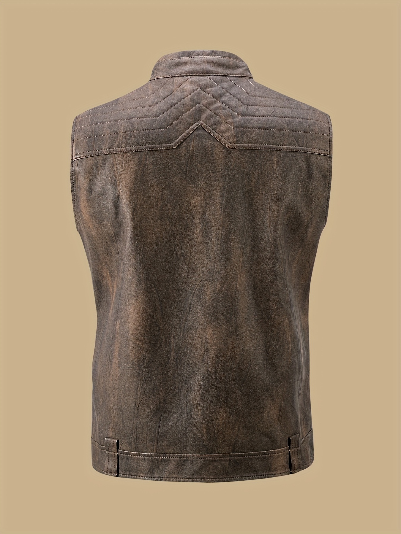 [Vintage Style Vest] Lightweight Vintage-Style Men's Vest | Zipper, Stand Collar, Chest Pockets | Casual Streetwear Outerwear for All Seasons