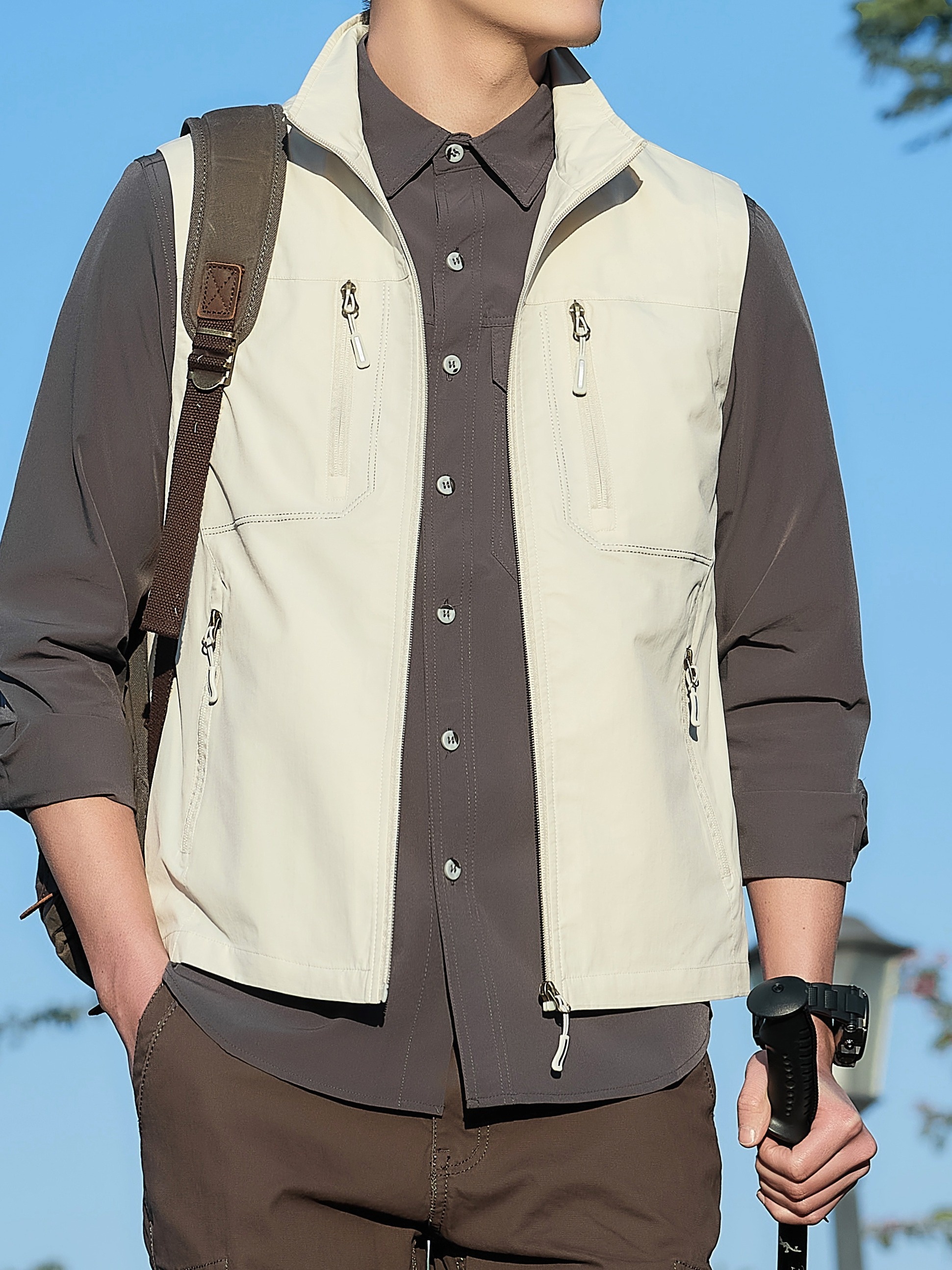 6801 Multi-Pocket Outdoor Vest - Sleeveless Stand Collar Casual Hiking & Travel Vest with Multiple Pockets, Durable Non-Stretch Fabric, All-Season Use, Hand Washable, Hiking Gear, Secure Zipper Closure