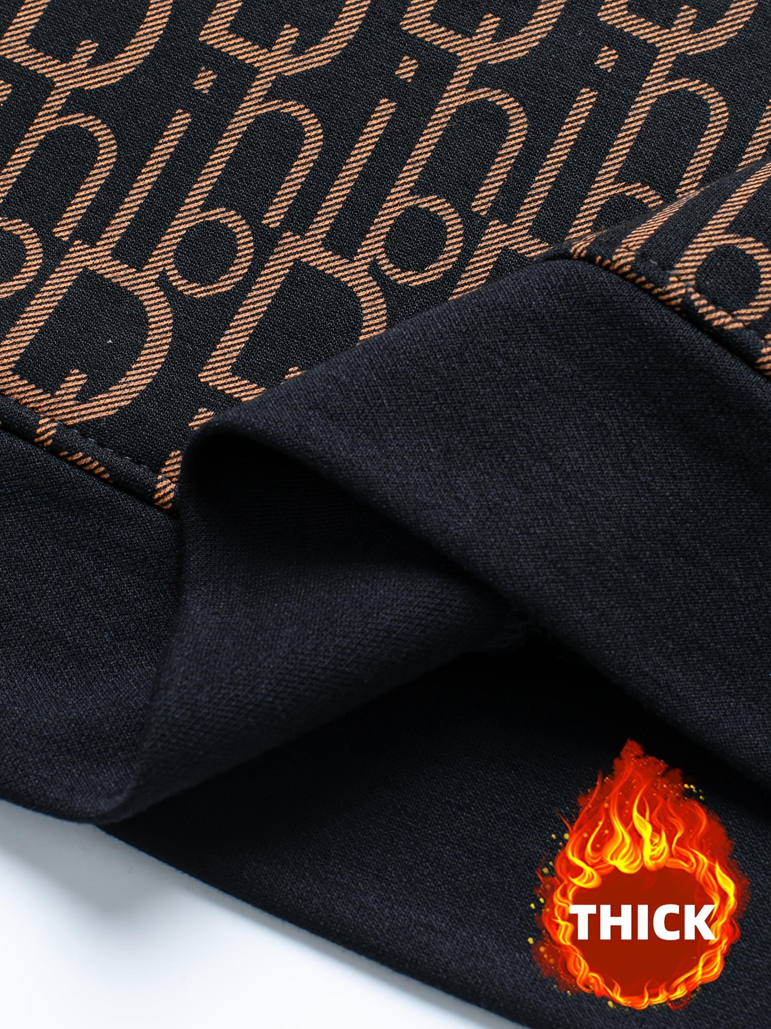 Men's Thermal Fleece-Lined Crewneck Sweatshirt - Thick Winter Warmth with Bold Letter Graphic, Soft Casual Long Sleeve Pullover, Machine Washable Cold Weather Gift for Him, Winter Sweaters, Cold Weather Apparel, Stylish Pullover