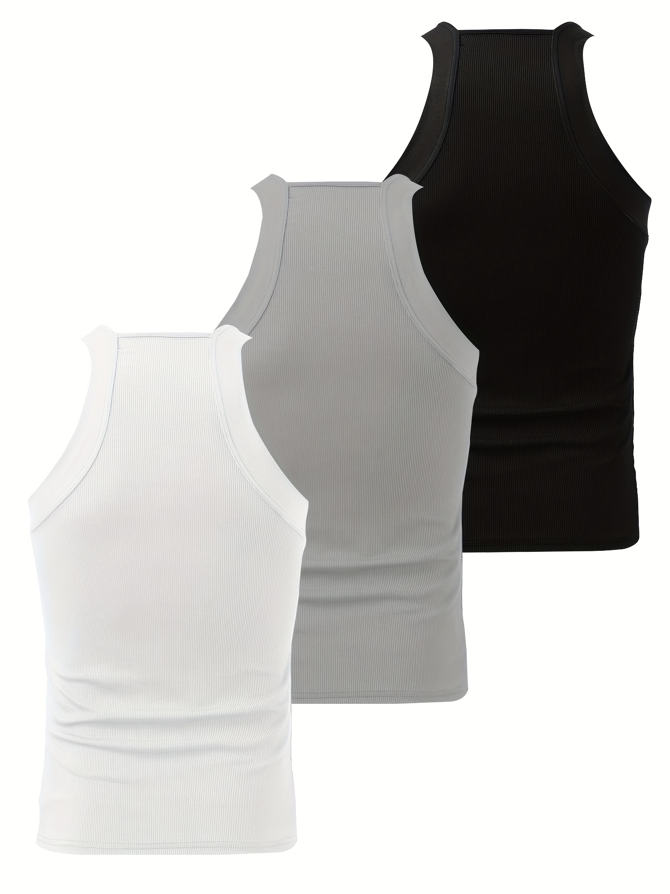 3-Pack Men's Sexy Slim-Fit Stretch Tank Tops - Sleeveless Off-Shoulder/Boat Neck Summer Muscle Tops, Medium-Stretch Fabric, Hand Wash Only, Black/Grey/White, Summer Tank Tops